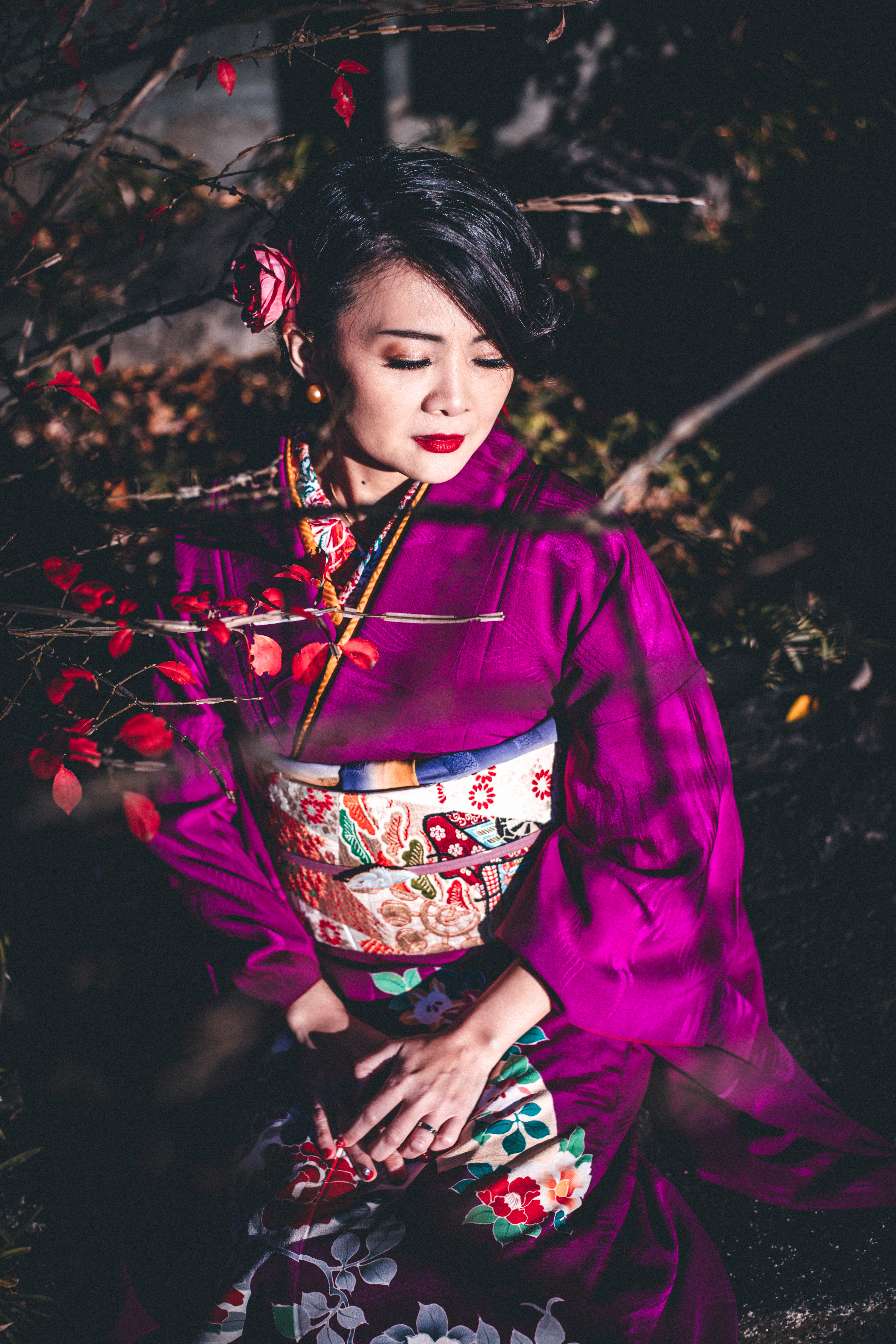 I want to offer you an authentic kimono experience and portraits of the highest quality — I use only traditional kimono items and choose a kimono outfit for you based on your personal style and any requests you may have. I give you an explanation about the type of kimono you are going to wear, its patterns, any meanings, formality level. I do not repeat outfit combinations, it will always be unique. My photography style is dreamy, dramatic, romantic -- over the years I have developed a recognizable photography style and I take great pride in my work. Beautiful portraits of you and authentic Japanese kimono create a unique, unforgettable experience.